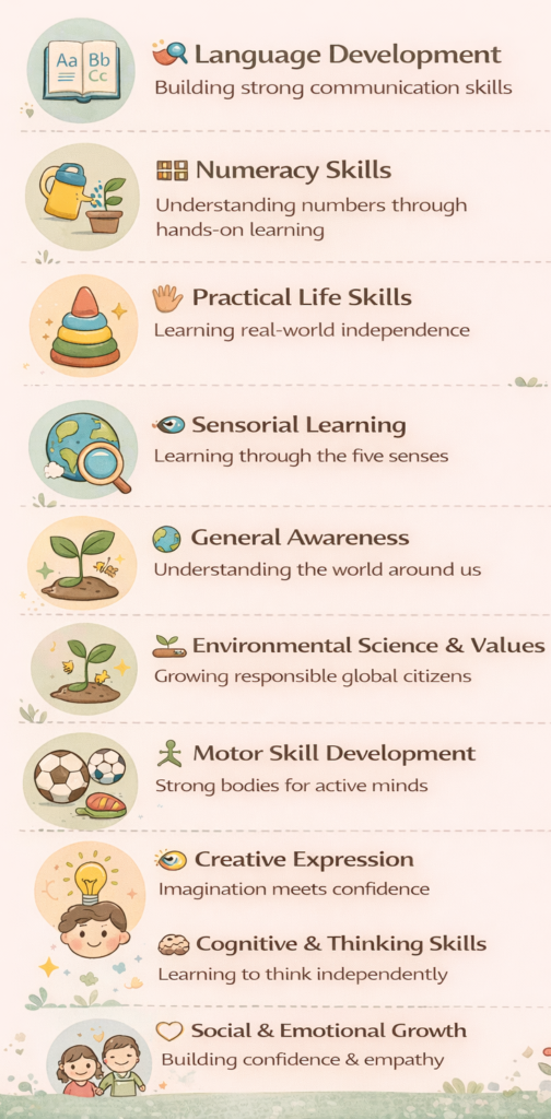 Children are gently guided to explore, question, observe, and understand the world around them in a joyful and engaging manner.